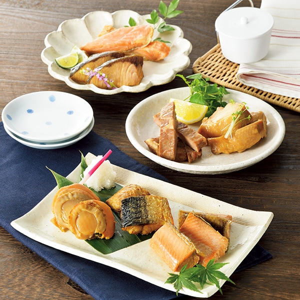 | 内容量 | 匠の焼漬 さけ・さば、お肉の焼漬 豚肩ロース・鶏もも、焼き上げ越乃甘粕漬さけ・焼き上げ復刻味噌漬さけ、各1袋(計6品) |